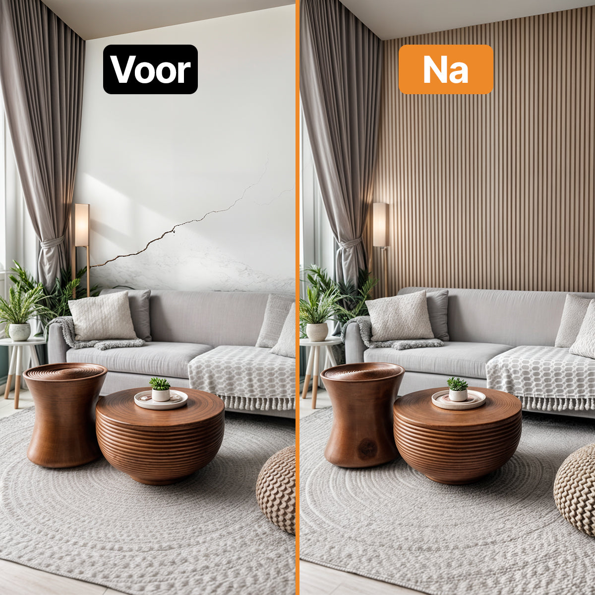 Traditionele wandpanelen zijn vaak duur, lastig te monteren en vereisen vakkennis. Eén fout bij het zagen of meten, en je kunt opnieuw beginnen. Met Panalux kies je voor een slimme, foutloze en betaalbare oplossing – zonder compromis op stijl of kwaliteit.